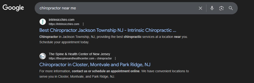 Location-based keywords: “chiropractor near me,” “chiropractic clinic in [your city]”